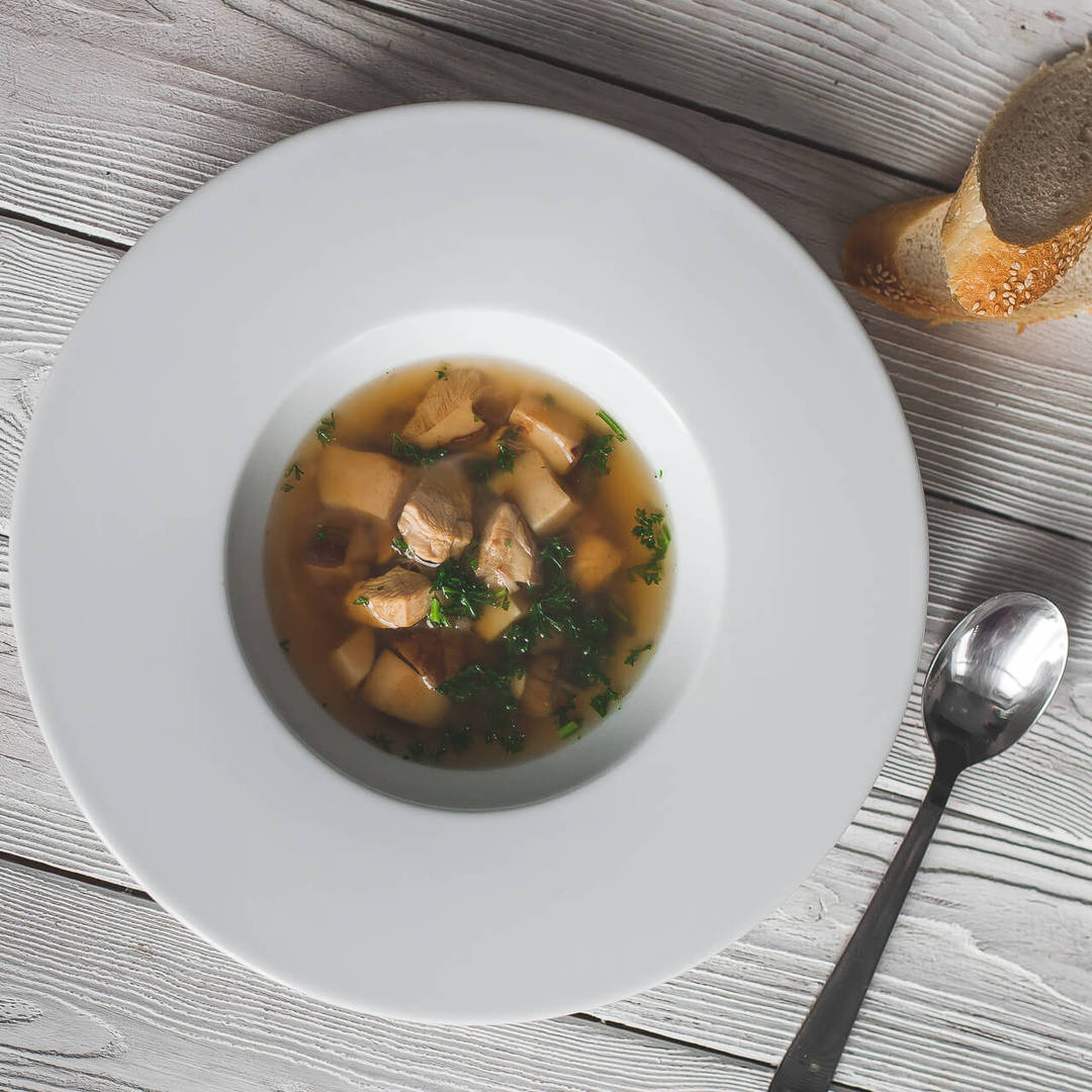 Сливочные супы обязательно готовят в любом респектабельном ресторане. Так почему не сделать их традиционными и на наших кухнях? Ведь супы с густой и шелковистой текстурой — самая комфортная еда для человека, истосковавшегося по диетической пище. Они нежны как бархат и вкусны как настоящее лакомство. Существует несколько технологий достижения гладкости супа. Самые распространенные – блендер, который просто взбивает готовый суп, и приготовление с загустителями – сливками, мукой, сыром и пр. Пожалуй, самым популярным является сочетание курица — шампиньоны — сыр. Он – настоящее блаженство для желудка. Почему суп следует готовить именно с шампиньонами? Лесные грибы не дадут того чудесного золотистого оттенка, который стал особой приметой сырного супа. Наш рецепт самого аппетитного густого супа с шампиньонами и с курицей — вам в помощь. Фото пошагово.