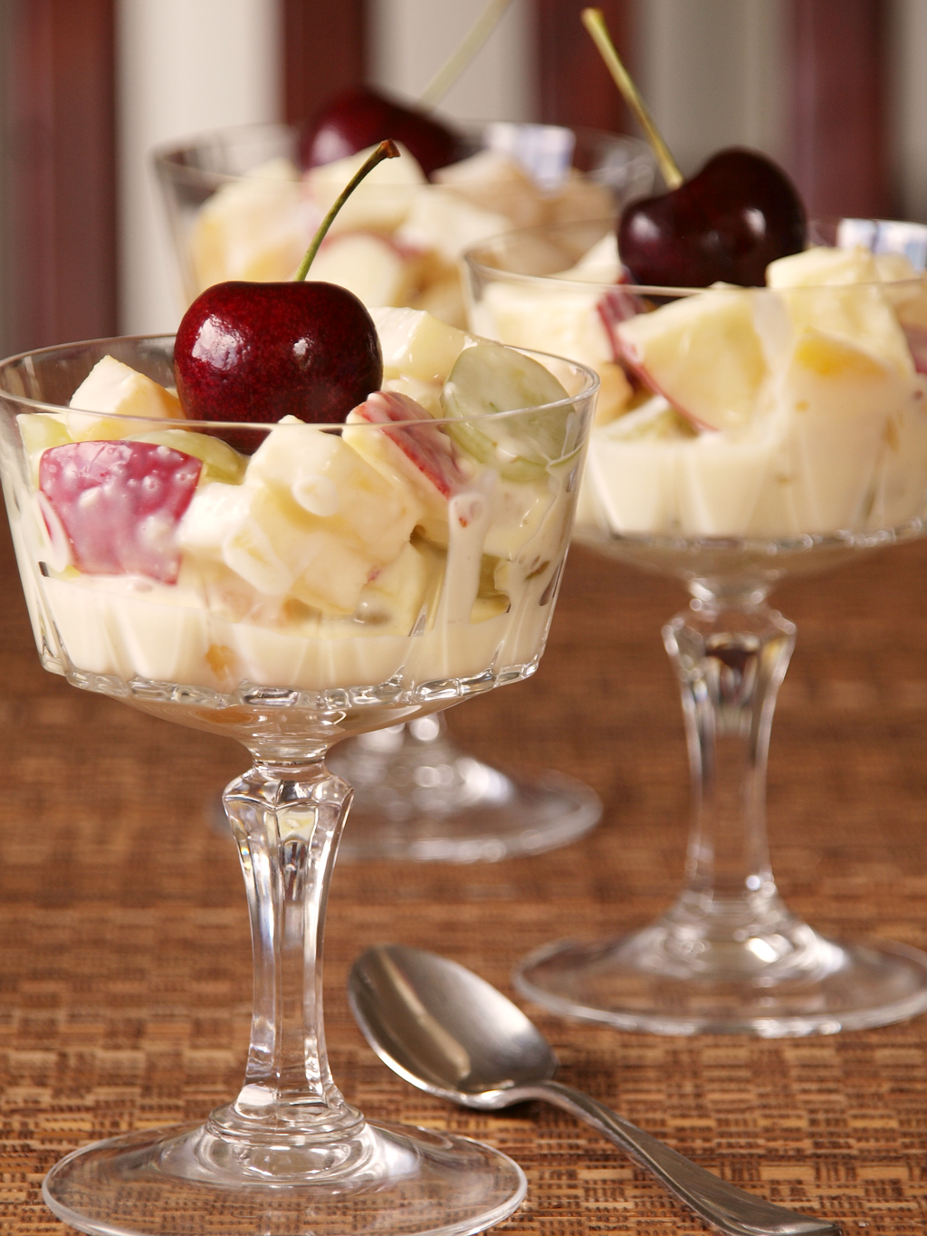 Для американского салата «Амброзия» от других фруктовых салатов вам не понадобятся сезонные фрукты. Можно использовать консервированные и наслаждаться роскошным сочетанием …