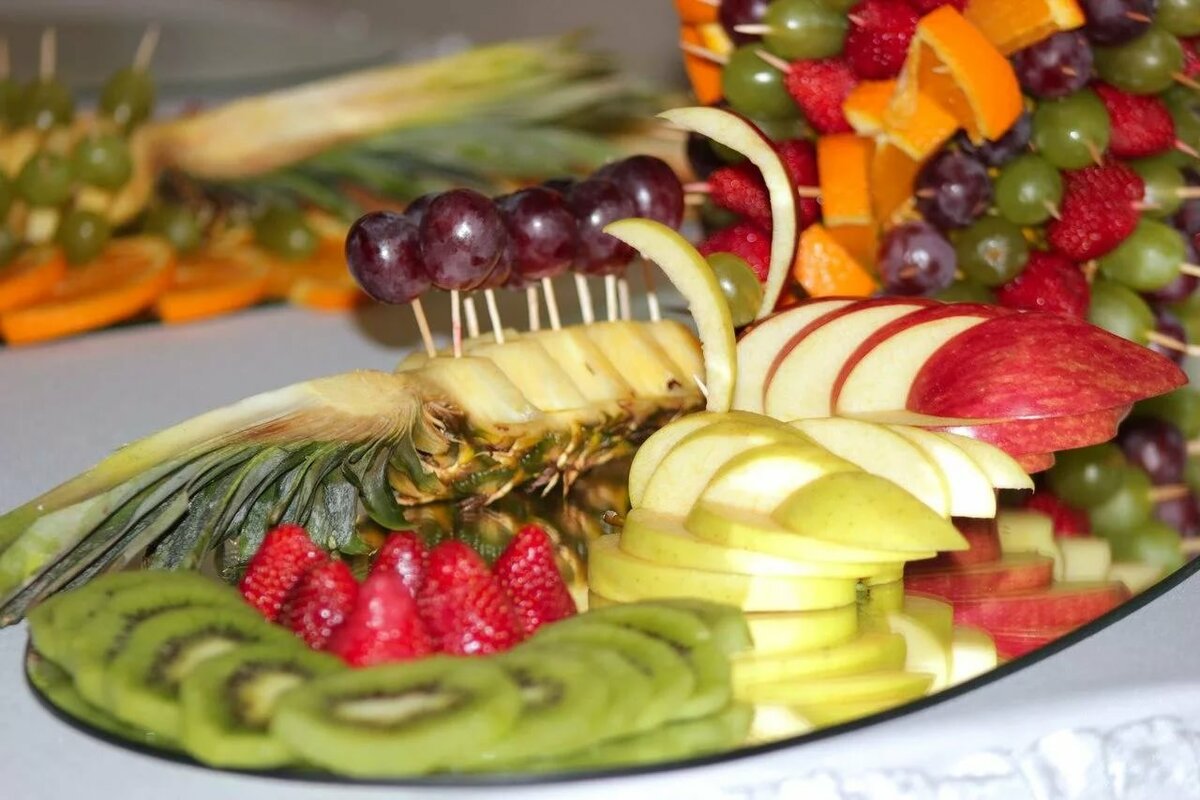- 6. Карвинг из овощей и фруктов прекрасно украсит любой салат, а фруктовые свечи праздник.