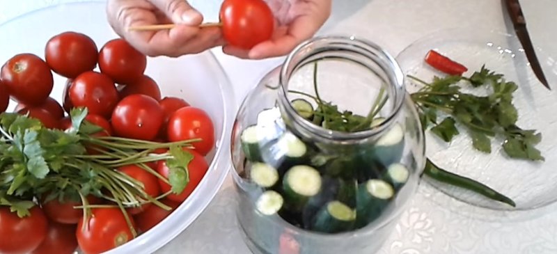 Рецепт закатки помидоров с огурцами и патиссонами без уксуса