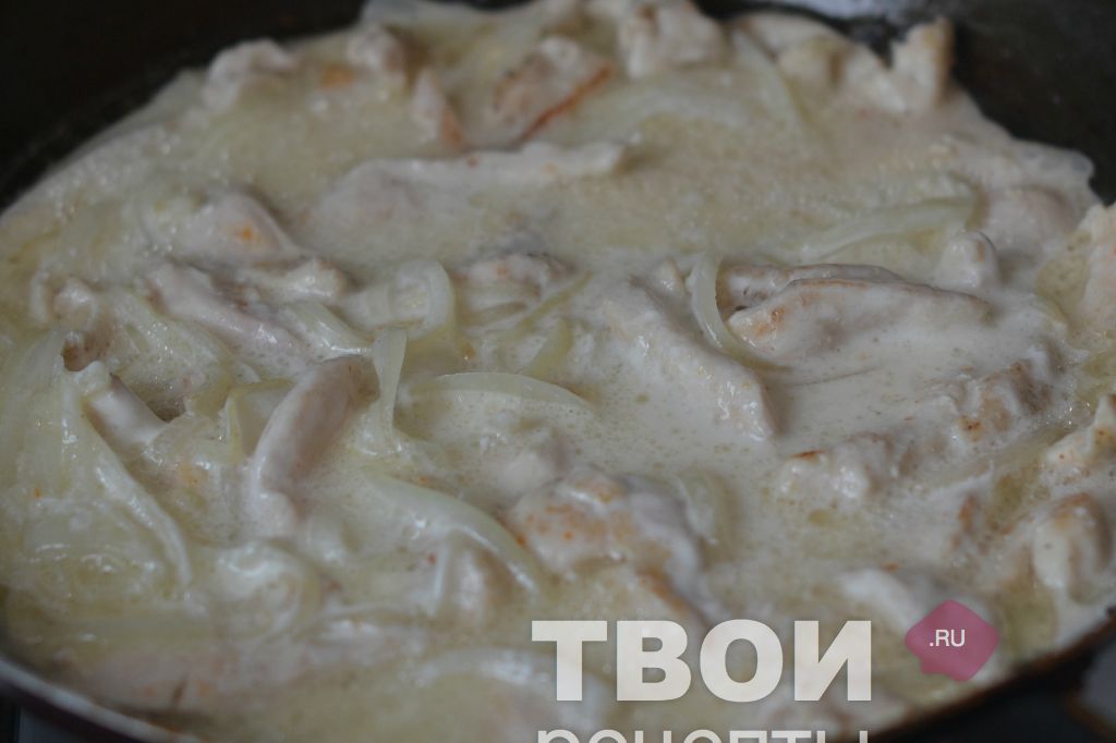 Бефстроганов из курицы со сметаной и томатной пастой