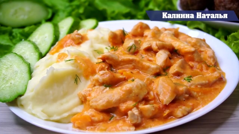 Ключевое слово: куриный бефстроганов, легкий куриный ужин, бефстроганов