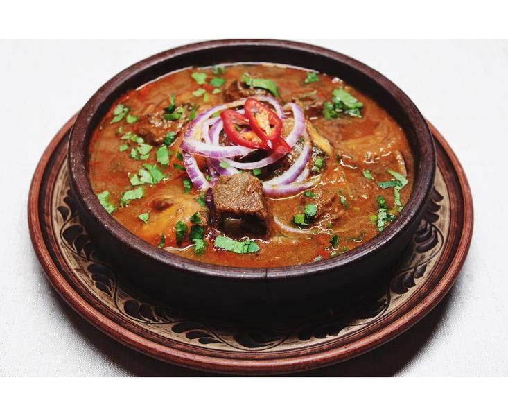 С непривычки в чанахи баранина может показаться очень жирной и тяжелой пищей, но это не так она должна правильно сочетаться в рецепте с овощами и травами.