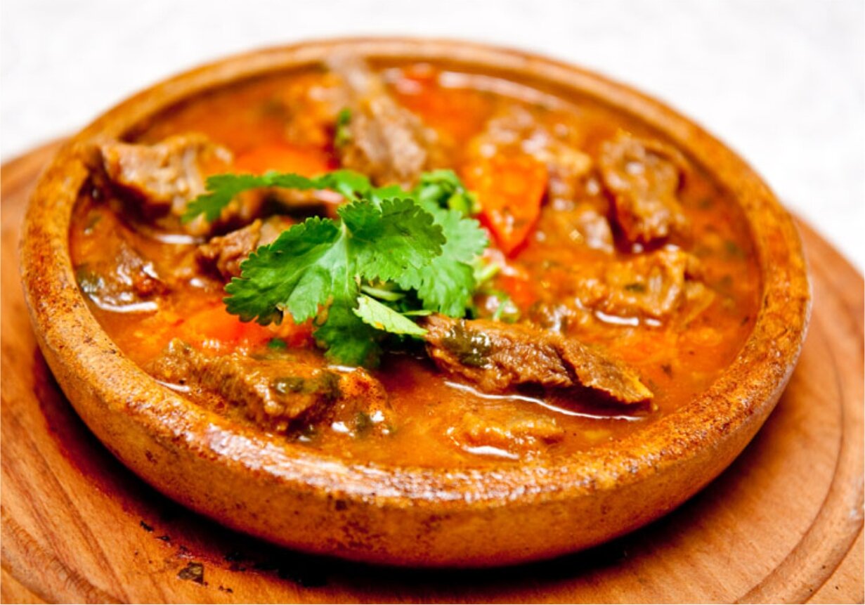 Это блюдо готовится без добавления воды, что обеспечивает ему неповторимый вкус, очень мягкий и острый одновременно.