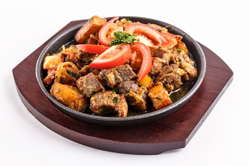А кто у нас мастера по созданию яркого и вкусного? Конечно же, наши грузинские друзья. Вот у кого кухня, не позволяющая остаться равнодушным. С одной стороны, довольно простая, а с другой, неизменно радующая. Вот, например, не слишком раскрученное блюдо — чашушули. Говядина, тушенная в остром овощном соусе. То, что нужно. Пробуем. Только специй не жалейте.