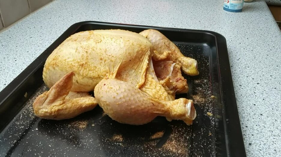 Я всегда добавляю в птицу горчицу. Она придает пикантность и приятный вкус. Но не добавляйте много, будет острая. Специи мы используем специальные, для птицы. Но это не обязательно. Просто можно добавить немного куркумы, кетчупа или соуса томатного. В специях содержится перец, куркума, томаты сухие. А как известно, помидоры делают мясо мягче, за счет кислоты, содержащейся в них.