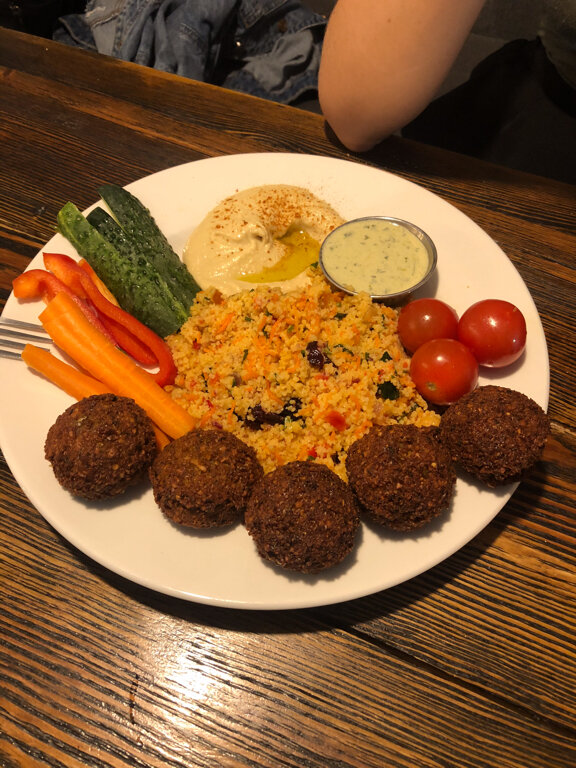 « Изумительная еда! Такой дефицит фалафеля в Милуоки. Были фалафель, куриная шаурма и куриный шницель… все отлично! Более чем адекватные порции. Хорошо приправленный. Спасибо!!!!» — Стефани М.