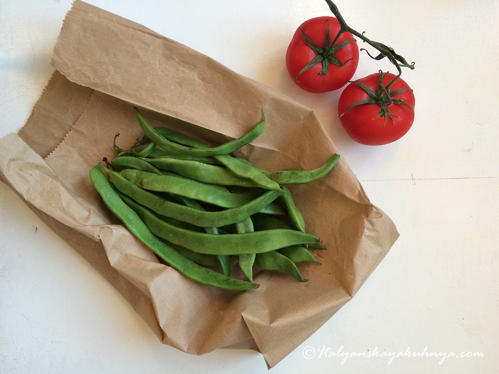 - Стручковая фасоль: пару горстей (на фото 1-а )