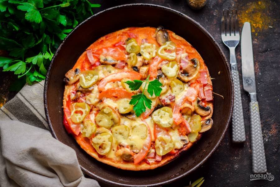 Пицца на сковороде на завтрак