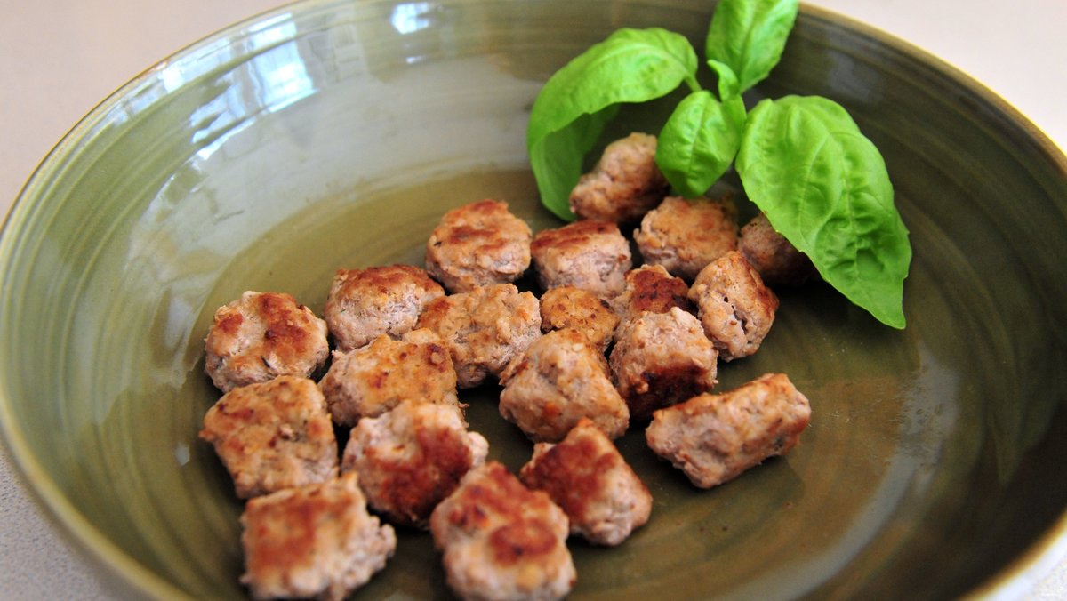 - оптимально использовать рубленое мясо свинины и говядины, смешанное в равных пропорциях — ассорти из фарша;