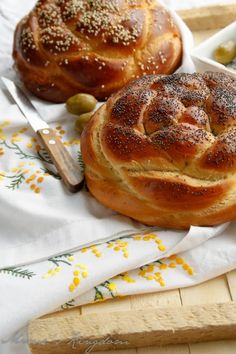 Накройте и дайте подняться, пока не увеличится вдвое. - Разогрейте духовку до 375 градусов F.Смажьте хлеб яичным желтком и посыпьте маком (по желанию). Выпекать от 38 до 45 минут или до золотистой корочки.