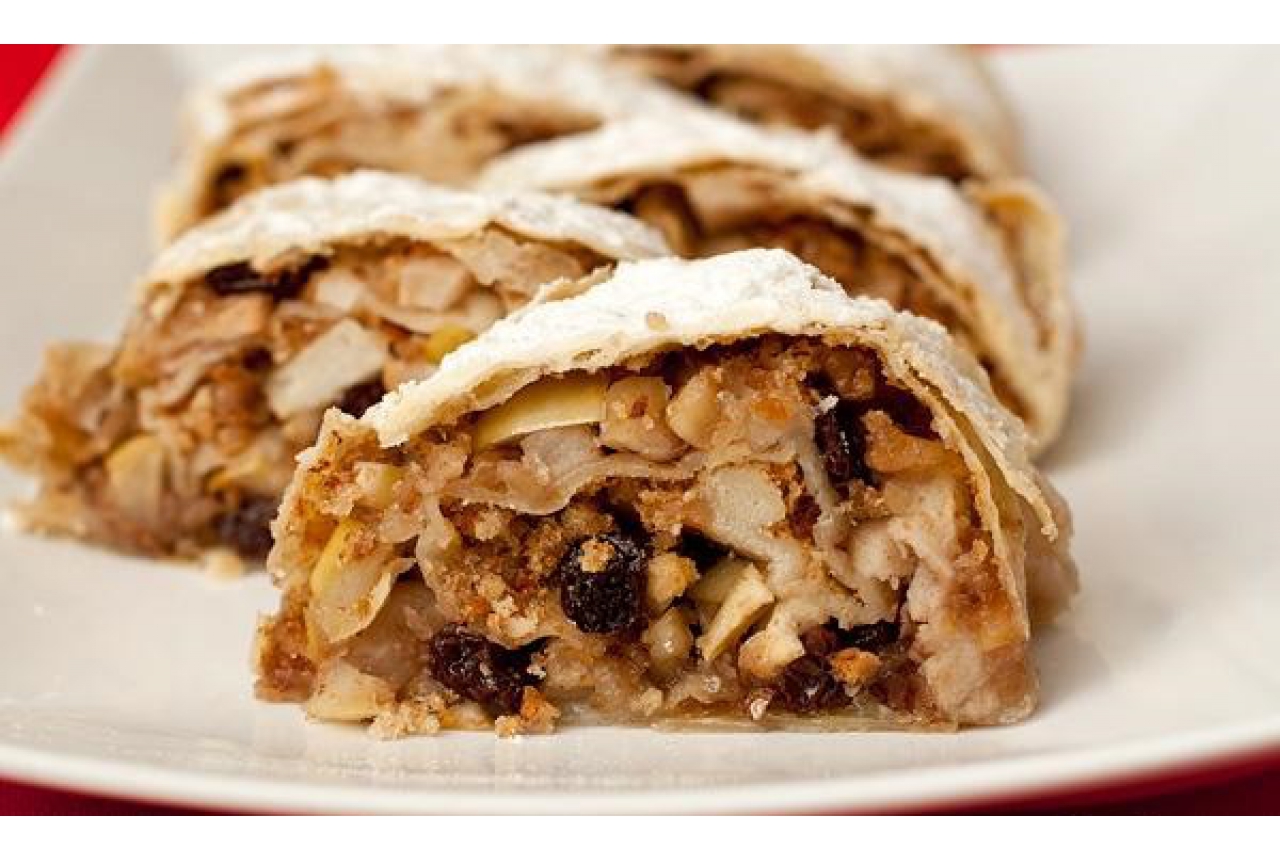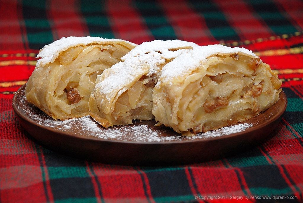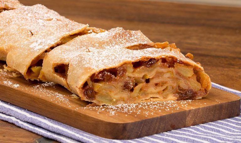 Штрудель — классический рецепт из вытяжного теста с яблоками, изюмом и корицей — Рецепты, продукты, еда