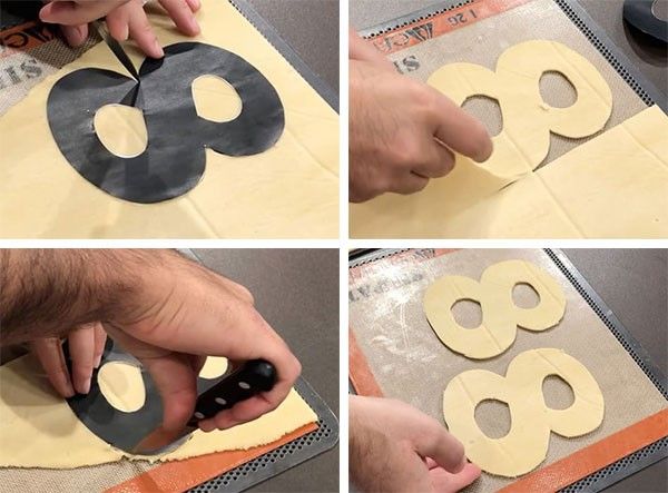 - Аккуратно обрежьте по краям и ставьте цифры выпекаться.