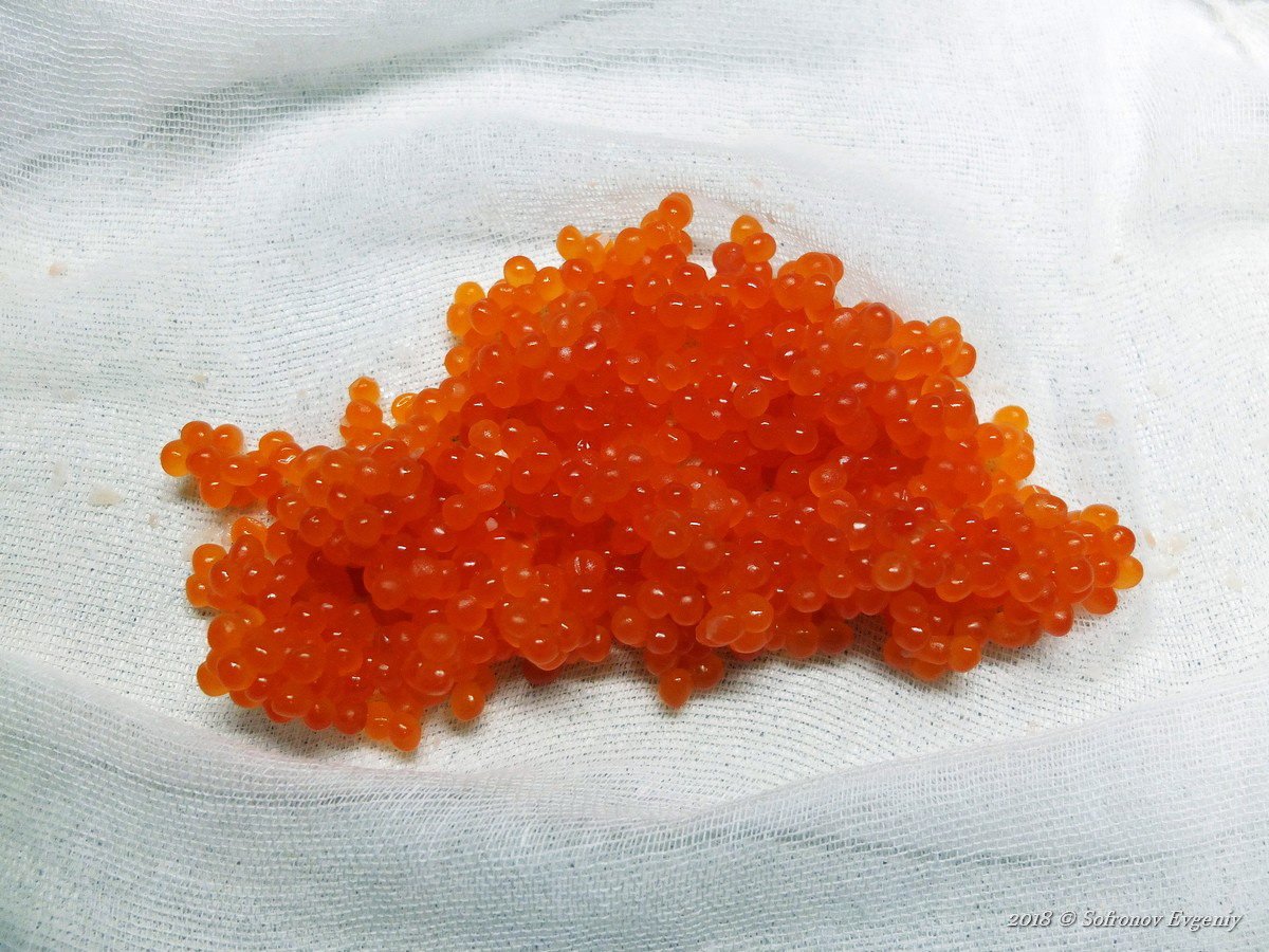 Икра в лососевых находится в плёночных мешочках – ястыках. От этих плёночек нужно избавиться, не повредив при этом икру.