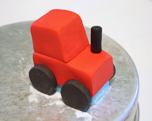 Окошки, переднюю часть, фары и иного рода детальки тортика выделим мастичным тестом другого цвета. Можно использовать остатки с обтяжки дороги – мастику, закрашенную пищевым красителем в серый цвет.