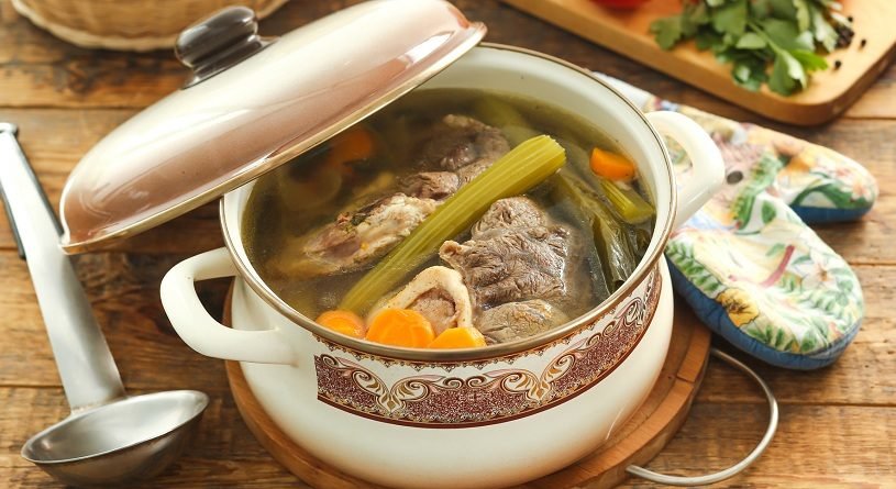 Бульон, можно использовать для супов, соусов или вторых блюд. Процедите его через сито или марлю. Если у вас нет возможности использовать его сразу. Заморозьте в морозилке в леднице — такие кубики быстро размораживаются, и не занимают много места. А если добавить немного желатина, то можно сразу приготовить заливной язык на блюде.