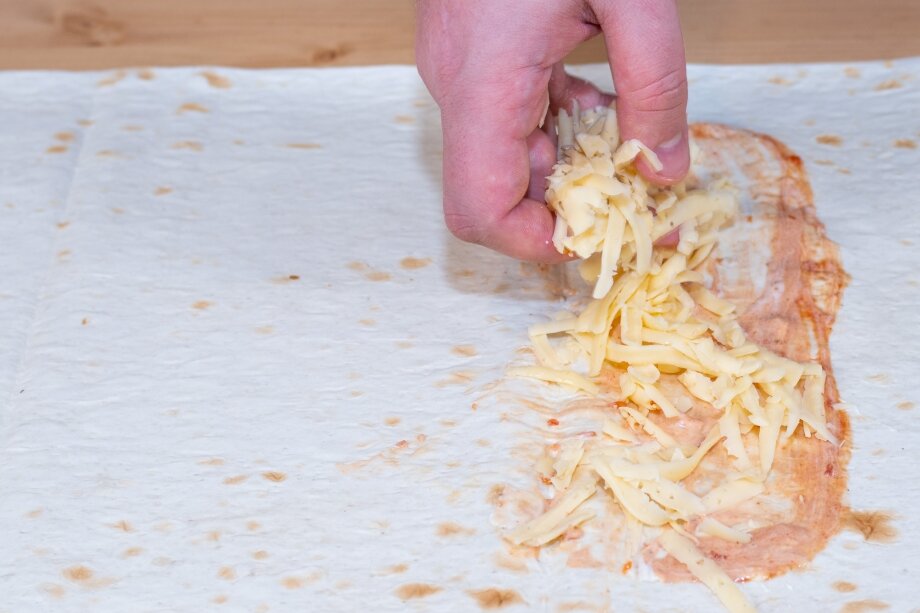 - Купите свежий сырный лаваш или выберите простой с круглыми (овальными) листами, которые проще заворачивать. Подсохший лаваш сломается при заворачивании, поэтому купленный стоит держать закрытым до последнего момента.