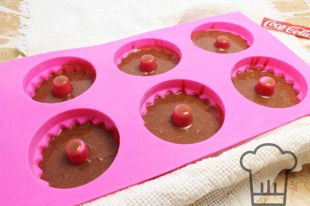 Сверху украшаем кусочками шоколада или другими вкусняшками. Расставляем формочки с тестом на противень и отправляем в уже разогретую печь.