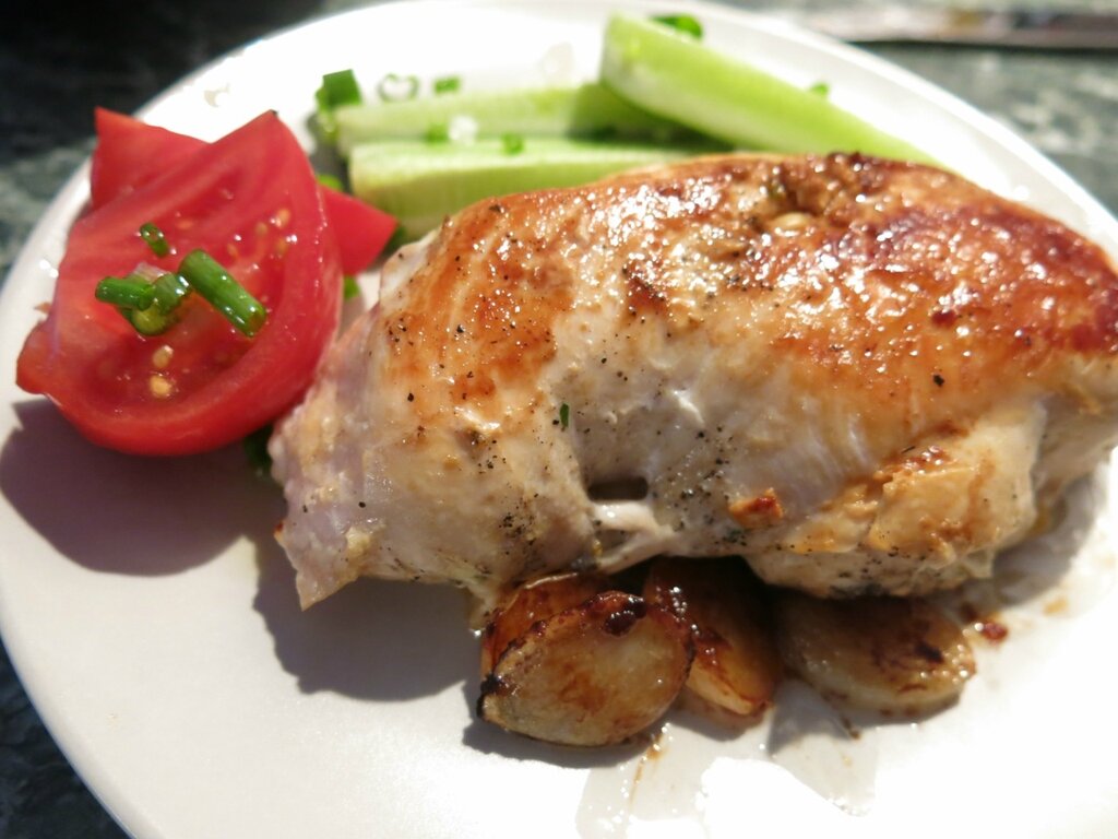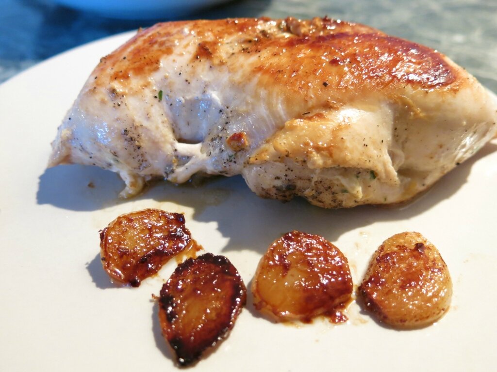Совет к рецептуЕсли приготовить это блюдо на пару, то оно будет еще здоровее и сочнее. Также можно свернуть из отбивных рулеты, только крем нужно положить внутрь. Закрепить зубочистками или шпажками и запечь в духовке. Также можно нарезать грудки «кубиками», обжарить на сковородке в масле, потом залить крем и снова обжарить (так и сделал с тем, что не поместилось на противень). Добавить вместо шпината щавель, ибо он роднее и витаминнее.