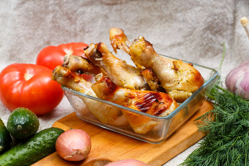 Хорошо промаринованные куриные ножки можно запекать. Для запекания куриных ножек в духовке можно использовать формы из керамики, стекла или тефлона, главное, чтобы у них был небольшой бортик, чтобы соки и маринад не вытекали во время запекания.