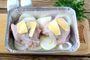 - Обжаренную курицу переложить на противень и печь кармашки из куриного филе с сыром в течение 25 минут при температуре 180 градусов.