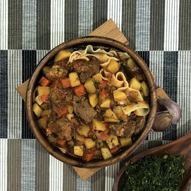 Ярчайший представитель своего семейства. Классический рецепт подразумевает использование баранины, стручковой фасоли, баклажанов, капусты, редьки и обязательно – помидоров или томатной пасты.
