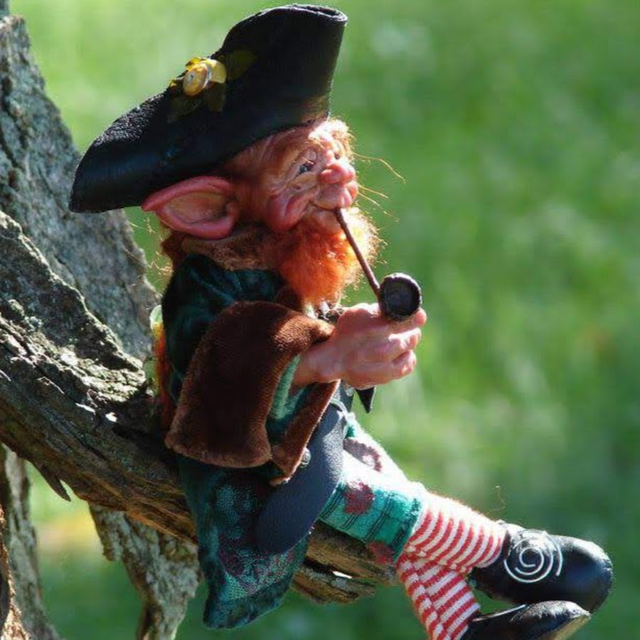 В ирландском фольклоре этого неуловимого человечка можно встретить у основания радуги. Местонахождение можно определить по звуку молоточка, ведь, этот рыжебородый мужичок не любит сидеть без дела.