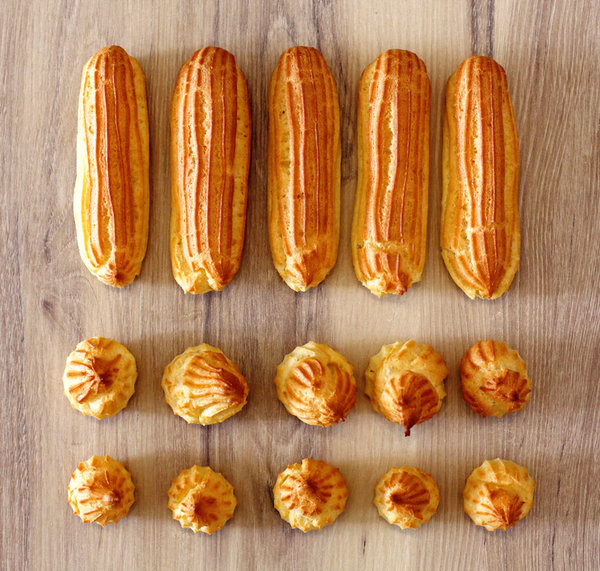 В базовом рецепте используется полстакана сливочного масла, один стакан воды, четверть чайной ложки соли, один стакан муки и четыре яйца.