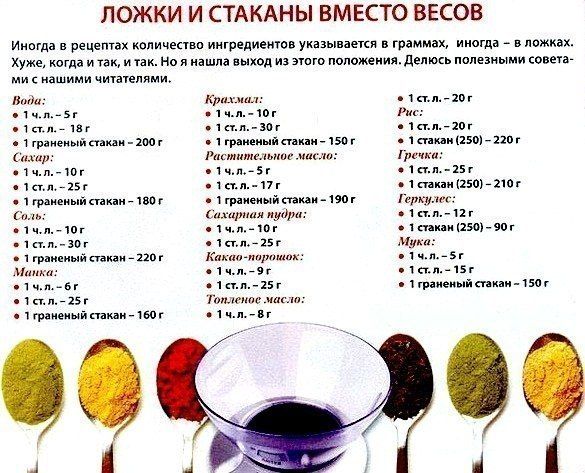 Всем известно, что главный секрет удачных блюд кроется в правильно подобранном рецепте. В каждом из них можно найти список ингредиентов, которые указаны в определенном количестве. Не все хозяйки могут определить на глаз, например, сколько муки в граммах в столовой ложке или сколько в стакане. Когда под рукой нет кухонных весов, очень полезно будет знать знание продуктов в ложках или стаканах.