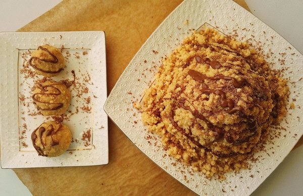 - 8. Полученную массу выложить на блюдо в виде горки, посыпать сверху остатками крошки, а затем поставить в холодильник на некоторое время, чтобы она хорошенько пропиталась.