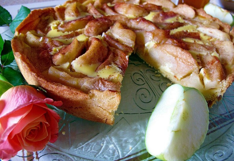 За идею берем всем известный рецепт цветаевского пирога. Оставляем без изменения универсальное тесто и обилие яблочных ломтиков, но сметанную заливку заменяем другой начинкой. Удачная вариация, которая наверняка приглянется любителям львовского сырника, творожного чизкейка, запеканки и прочих десертов на основе творога.