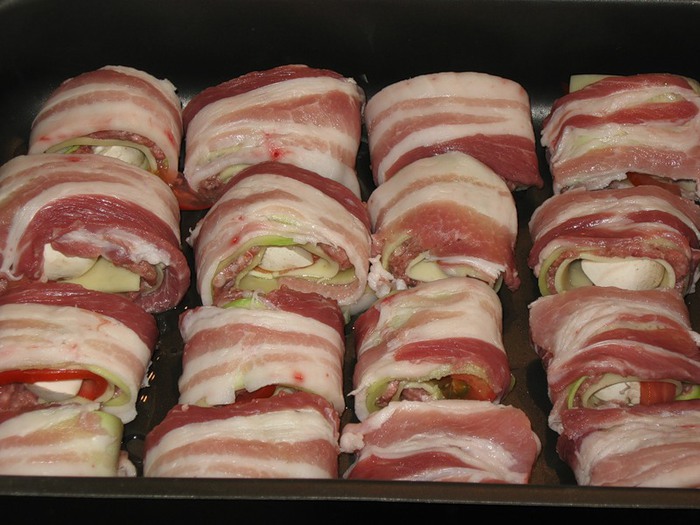 Мясные рулетики беконе в духовке. Рулетики из бекона с начинкой в духовке
