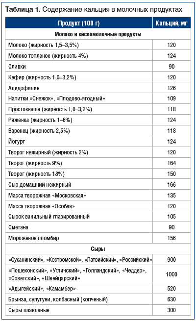 Список «Избранные продукты, богатые кальцием» ниже.