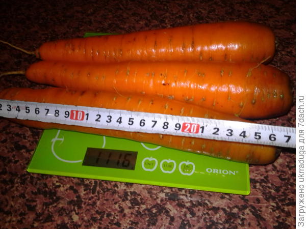 Этот сорт является одним из самых крупноплодных. Одна средняя морковь весит от 280 до 500 граммов.