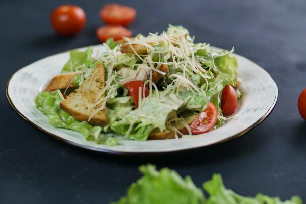Салат «Цезарь» с курицей, помидорками и сухариками