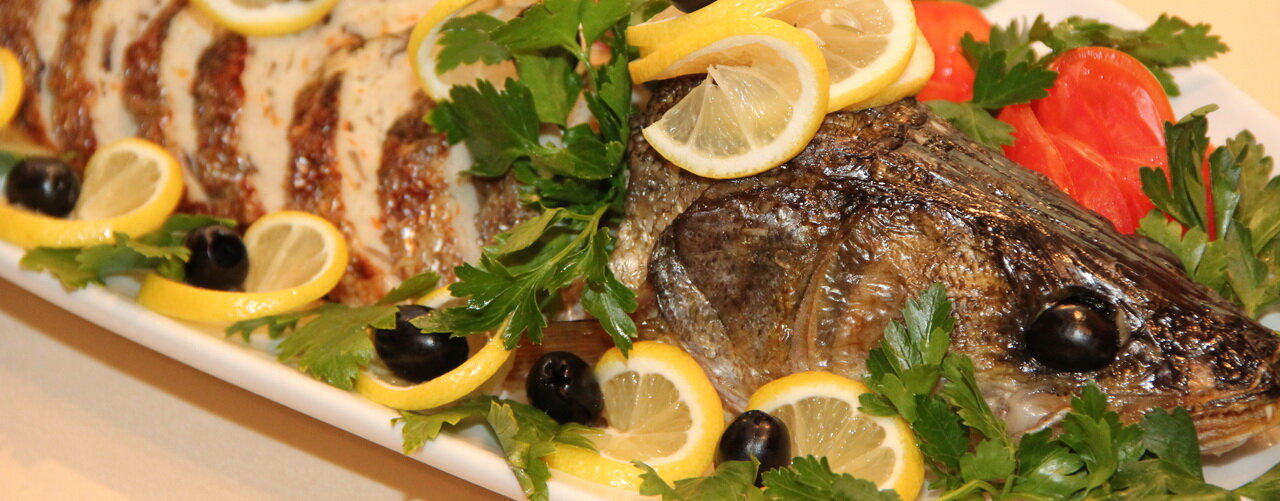 Запеченный нильский окунь с гремолатой Морепродукты и рыба Рецепты