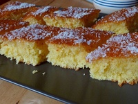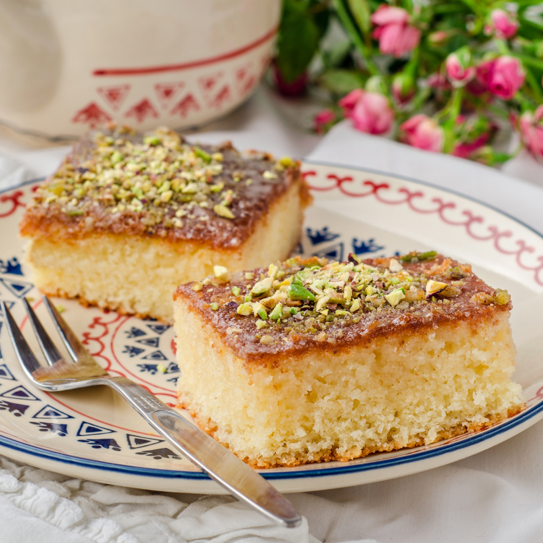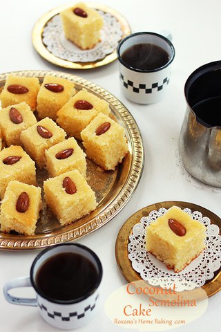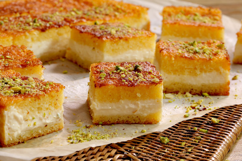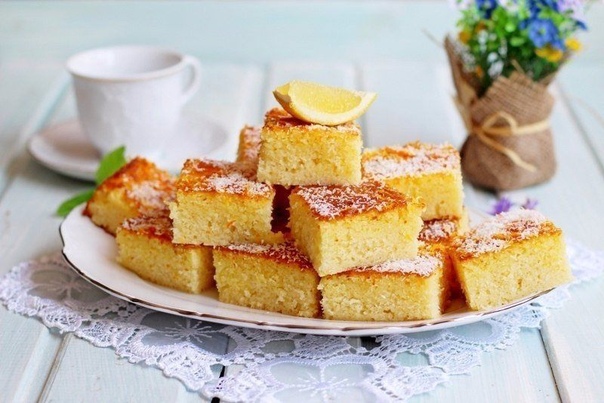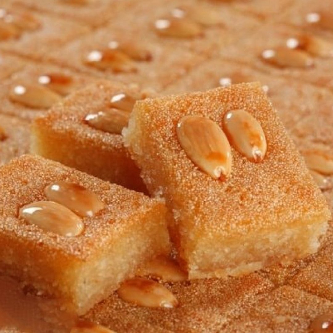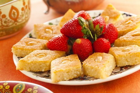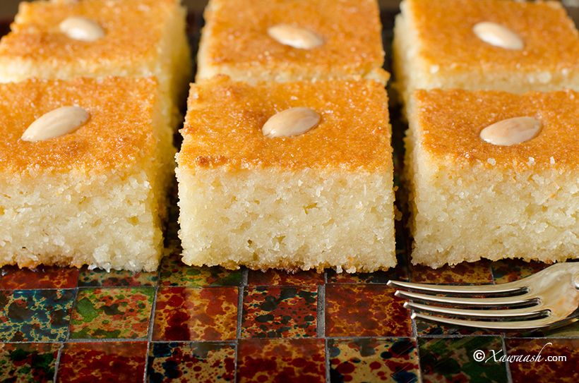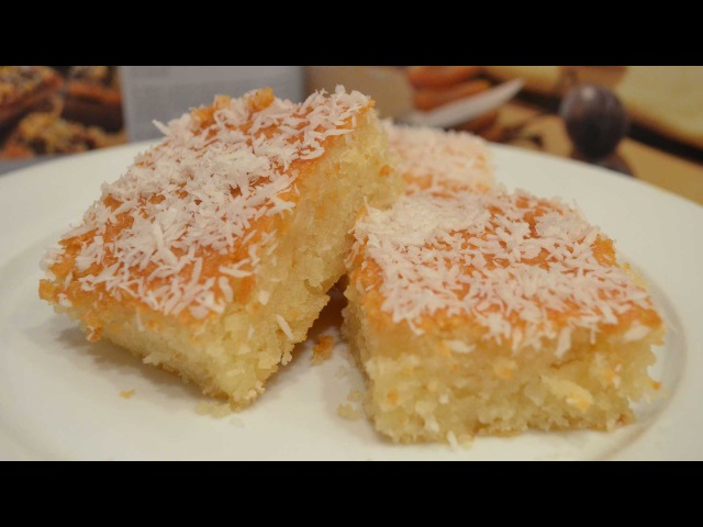 Basbous- Основными ингредиентами этого торта являются манная крупа и кокос, но для этого существует множество вариантов: вы можете приготовить его с миндальной мукой, кокосом, сгущенным молоком, йогуртом и можете добавить в него розовую воду или воду из цветков апельсина.