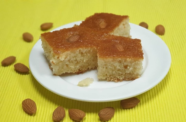 Basbousa — очень популярный пирог из манной крупы с Ближнего Востока.Время приготовления 15 минут