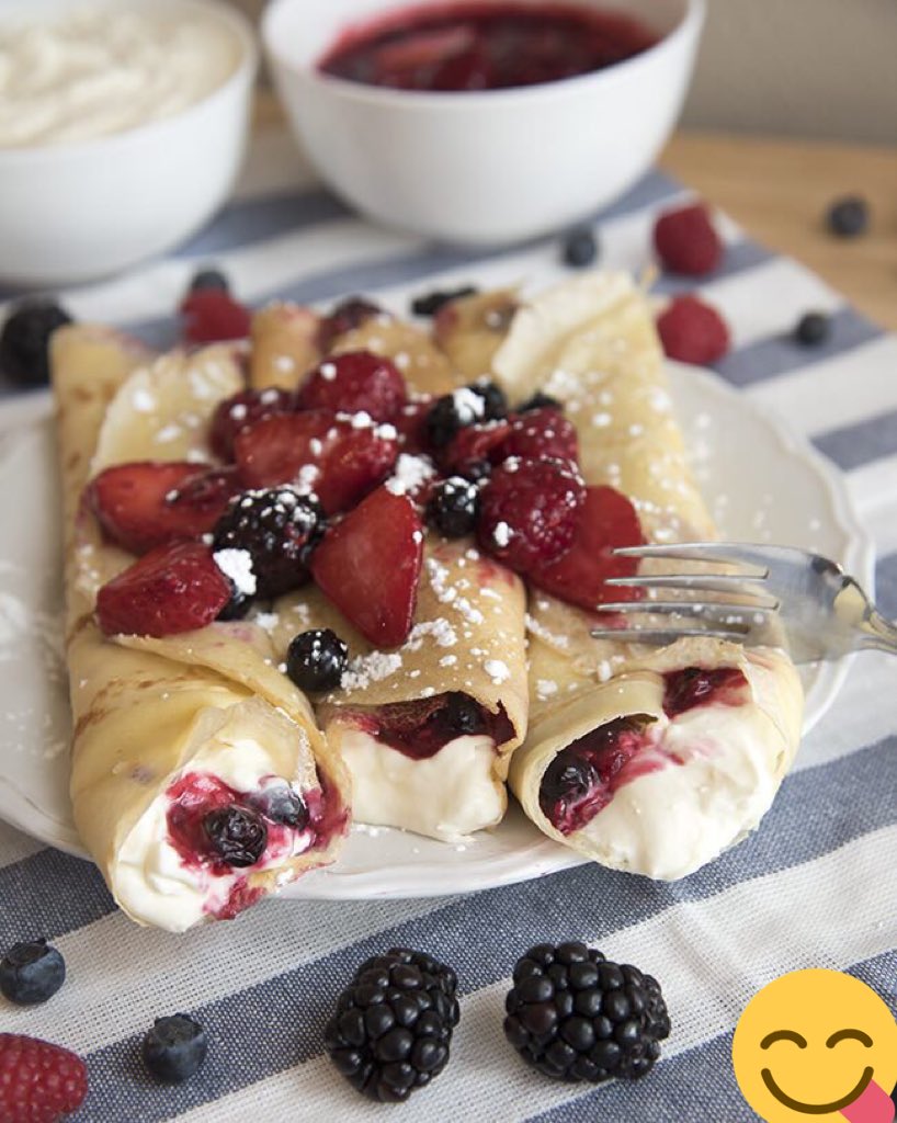 Шведские блины с вишневым сливочным сыром и шоколадно-банановой начинкой Рецепт | Сандра Ли