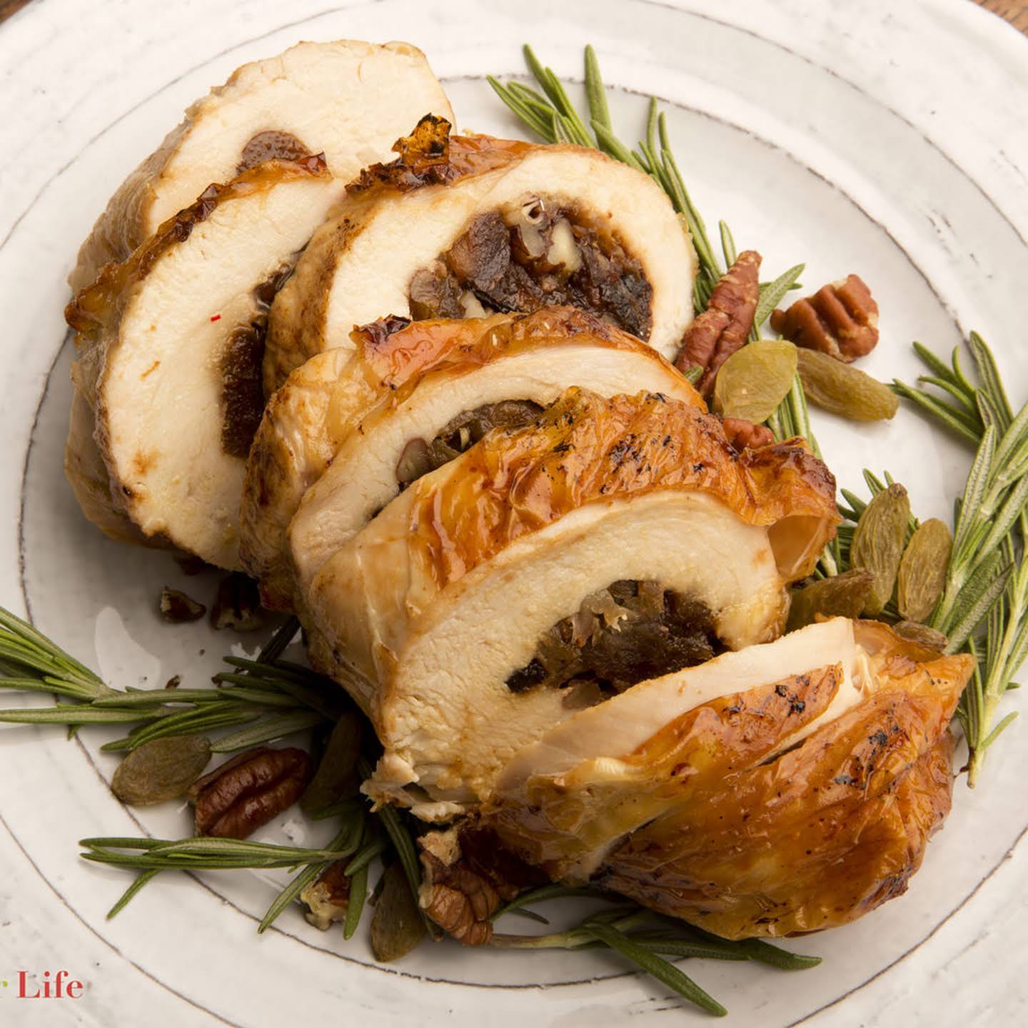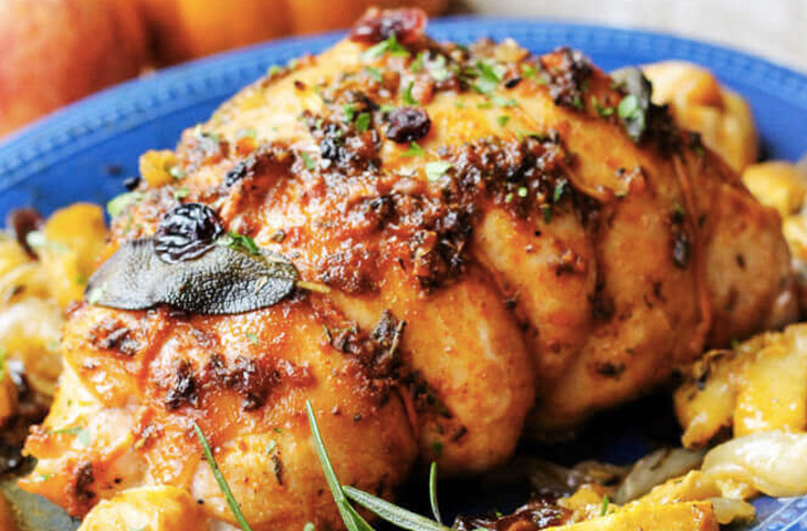 Филе индейки, фаршированное яблоками и ежевикой