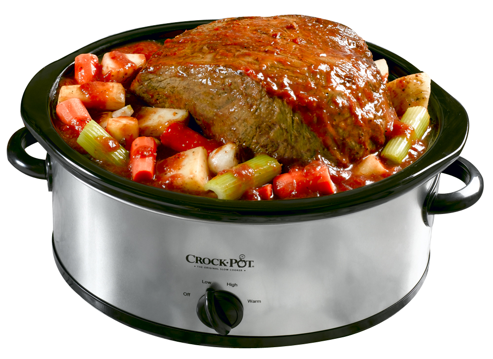 Pot Roast: Положите в мультиварку две нарезанных моркови и 6 небольших нарезанных картофелин. Обжарьте в кастрюле на плите внешнюю поверхность 2–3-фунтового жаркого с небольшим количеством масла в течение 5 минут.Добавьте жаркое в мультиварку. Готовьте на медленном огне 8-10 часов, пока не станет мягким.