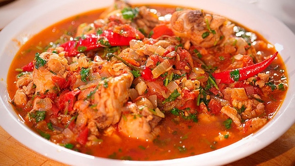В процессе томления на плите куриное мясо становится очень мягким, пропитанным запахом кинзы, чеснока и популярной в грузинской кухне приправы хмели-сунели, в результате чего готовое блюдо получается неимоверно вкусным, ароматным, в меру острым и очень аппетитным!