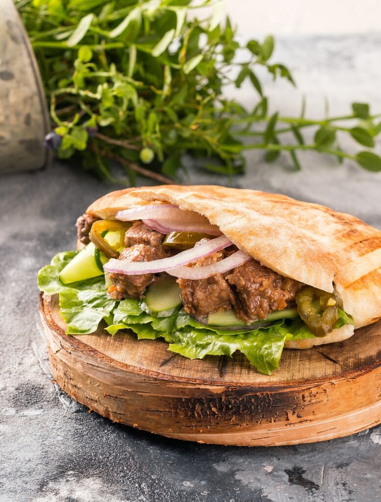 Но мое любимое занятие с карманами для лаваша (именно поэтому я их и сделал) — это делать гироскопы. Я не уверен, подлинна моя версия или нет. Это в основном похоже на тако в греческом стиле.
