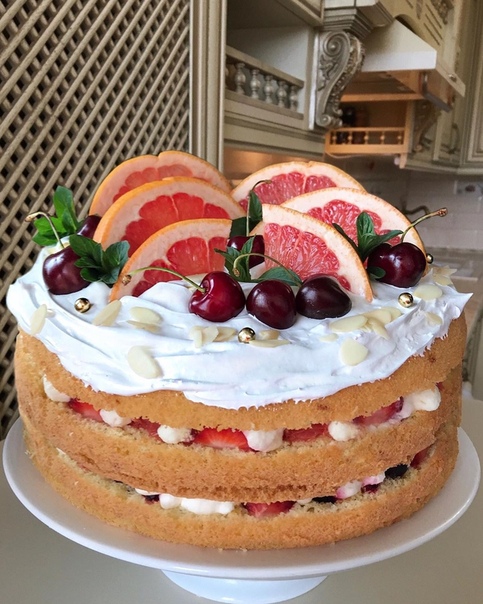 Бисквитный торт с фруктами и творожным кремом 4.0