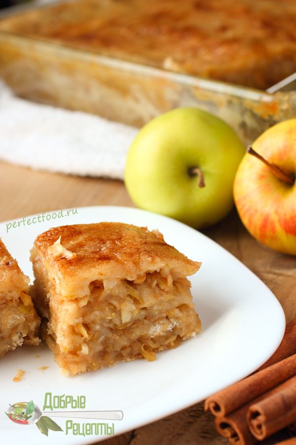 Вы узнали один из вариантов приготовления насыпного яблочного пирога, который называют еще «Пирог три стакана», «Все смешал, и готово» и т. д. Пирог этот пришел к нам из балканской кухни. Еще одно известное его название – «Насыпной яблочный пирог по-болгарски». Можно вносить небольшие коррективы в рецепт. Например, сливочное масло, добавленное в горячее молоко – это уже импровизация, но довольно удачная. Еще многое зависит от яблок. Самый оптимальный вариант – сорт «Семеренко». Они хоть и темнеют сразу, но зато имеют насыщенный кисло-сладкий вкус и обеспечивают пирогу достаточную сочность. Так что если у вас возникнут идеи импровизации – пожалуйста, пробуйте. Приятного аппетита, и будьте здоровы!