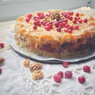 А теперь представляю вашему вниманию непосредственно расчёты. Итак, калорийность насыпного яблочного пирога ПП составит: Соединила в одной чаше все сухие ингредиенты — два вида муки, разрыхлитель, фруктозу и соль. Тщательно перемешала и разделила сразу на 3 равные части (мне так удобнее). Всего было 440 граммов, поэтому каждый слой теста будет примерно по 147 г. Яблоки вымыла, очистила от кожуры, удалила сердцевину. Нарезала мякоть произвольно и пробила кухонным чоппером в пюре в несколько заходов. Форму взяла тефлоновую прямоугольную 18х24,5 см. Это соответствует круглой диаметром d=23,5 см. На это количество продуктов можете брать форму и большего диаметра, а вот меньшего не стоит — не пропечётся. На дно формы вылила 20 г рафинированного подсолнечного масла. Распределила мучную крошку для первого пласта — высыпала, а затем постучала по очереди по всем сторонам формы, чтобы крошка легла более равномерно. Выложила слоем 500 граммов яблочного пюре. Распределила вторую часть сухого теста. На него — 500 г начинки и оставшуюся часть теста. Сверху максимально равномерно полила водой и подсолнечным маслом. Немного понаклоняла форму в разные стороны для распределения жидкости. Выпекала при 200’C в течение 35 минут. Вот и готов диетический насыпной пирог с яблоками! Напомню, что его итоговый вес после выпекания, то есть с учётом упарки-ужарки, 1434 грамма. А итоговая калорийность на 100 граммов ~182 ккал. Чтобы порезать его на красивые кусочки, нужно дать ему остыть. Вкус получается довольно необычным, насыщенным. Мои домашние подумали, что в нём есть корица или какие-то другие специи. А я в этот раз не клала ничего. Думаю, такой эффект даёт кукурузная мука. Сохраняйте рецепт себе в закладки браузера, на экран смартфона или на стену соцсети, чтобы не потерять! Готовьте с удовольствием! Будьте здоровы и красивы! 😉Продукты, 100 г Ккал на 100 г Количество, г Итого, ккал Мука рисовая «Гарнец» 345 180 621 Кукурузная мука «Кудесница» 340 180 612 Фруктоза 399 60 239,4 Разрыхлитель 230 15 34,5 Соль 0 5 0 Вода 0 100 0 Подсолнечное масло 899 70 629,3 Яблоко 47 1000 470 Насыпной яблочный пирог ПП 181,7 1434 (в готовом виде) 2606,2 Насыпной пирог с яблоками ПП пошагово с фото