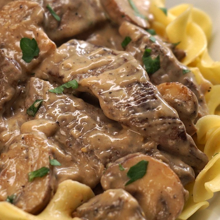 Нет, домашний бефстроганов — одно из тех блюд, где обязательно нужно использовать хорошие ингредиенты. Не пытайтесь использовать здесь половину или другую альтернативу с низким содержанием жира — густые сливки — лучший вариант.