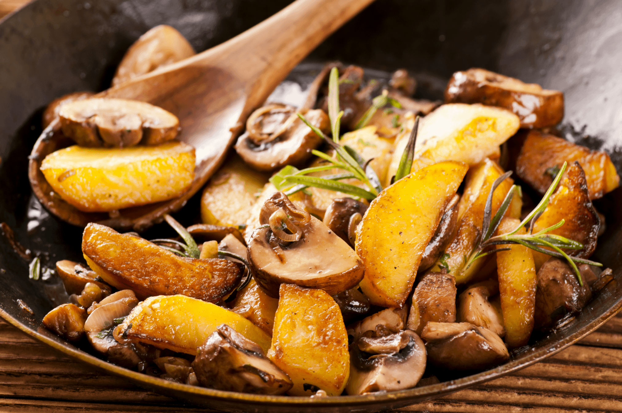 ESHA Research, Inc. Все права защищены Сливочный картофель и грибы на сковороде