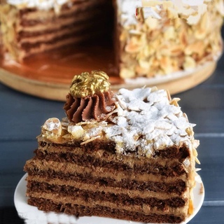 Торт — настоящая находка и фейерверк вкусов. Бесподобен всё с тем же кофе. При приготовлении аромат стоит такой, что голова идёт кругом. В исполнении не очень сложный, хотя некий навык необходим.