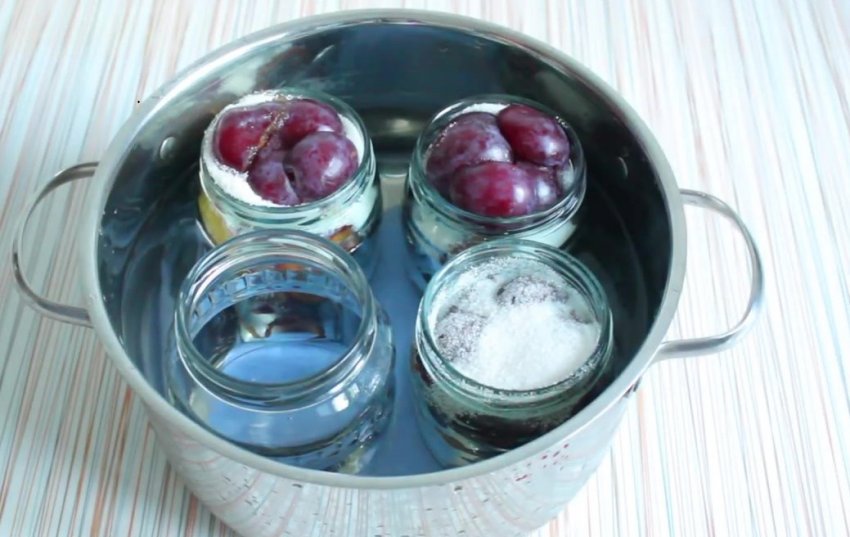 Предлагаем рассмотреть рецепт компота из слив и яблок на зиму, основанный на методе двойной заливки.